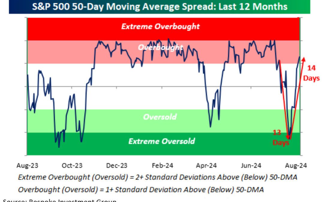 The S&P 500 gained 1.4% and 8% in eight days. The Dow added 1.3%, the NASDAQ was up by 1.4%, and the Russell 2000 outperformed with an increase of 3.6%. Notably, the gains come on light volume as much of Wall Street continues to be on summer vacation. The US Treasury market advanced across the curve after the dovish comments from J. Powell. Shorter-tenured Treasuries outperformed, which steepened the curve with the 2-10 spread ending at ten basis points. The 2-year yield fell by sixteen basis points to 3.91%, while the 10-year yield lost eight basis points to 3.81%. Oil prices fell by 0.9% to $74.87 a barrel. Gold prices increased by $9.60 to $2547.00 an Oz. Copper prices advanced by $0.06 to $4.21 per Lb. Bitcoin rallied nicely on the week, closing at just above $64,000. The Dollar index fell 1.7% to 100.66.
